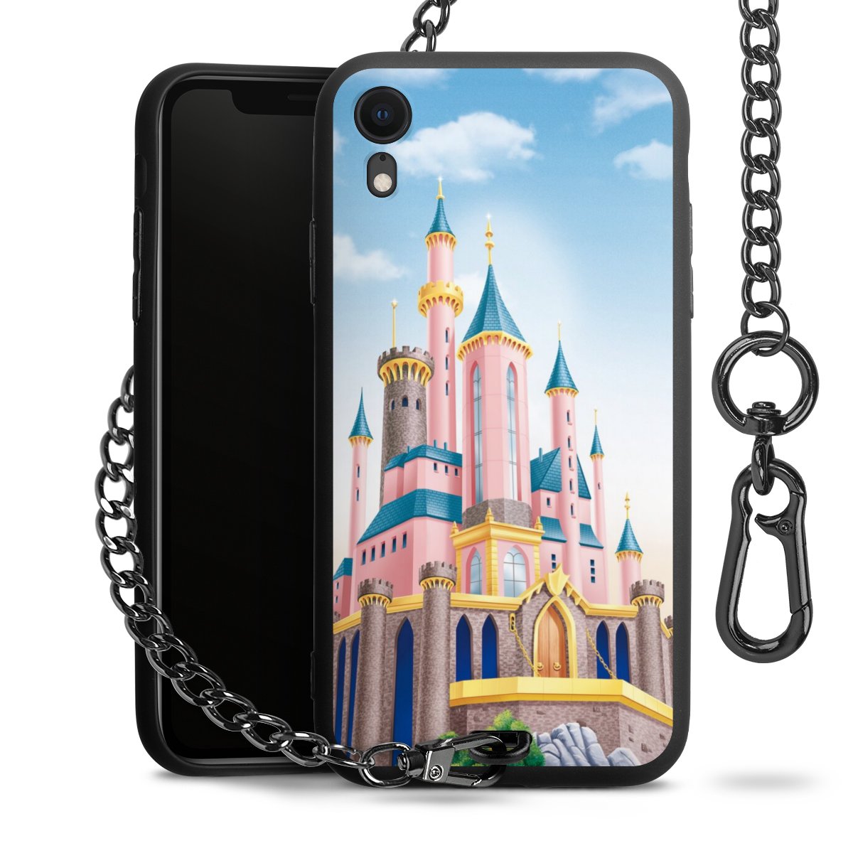 • Mattschwarze Handyhülle mit Metallkette