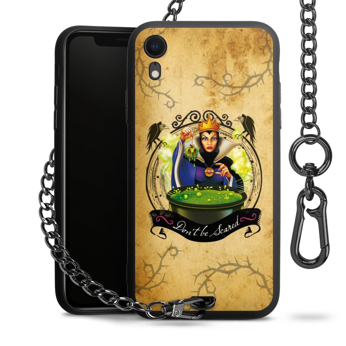 • Mattschwarze Handyhülle mit Metallkette