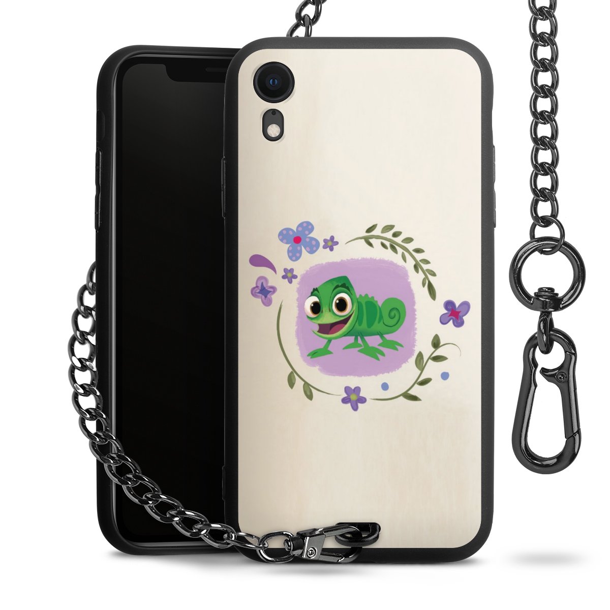 • Mattschwarze Handyhülle mit Metallkette
