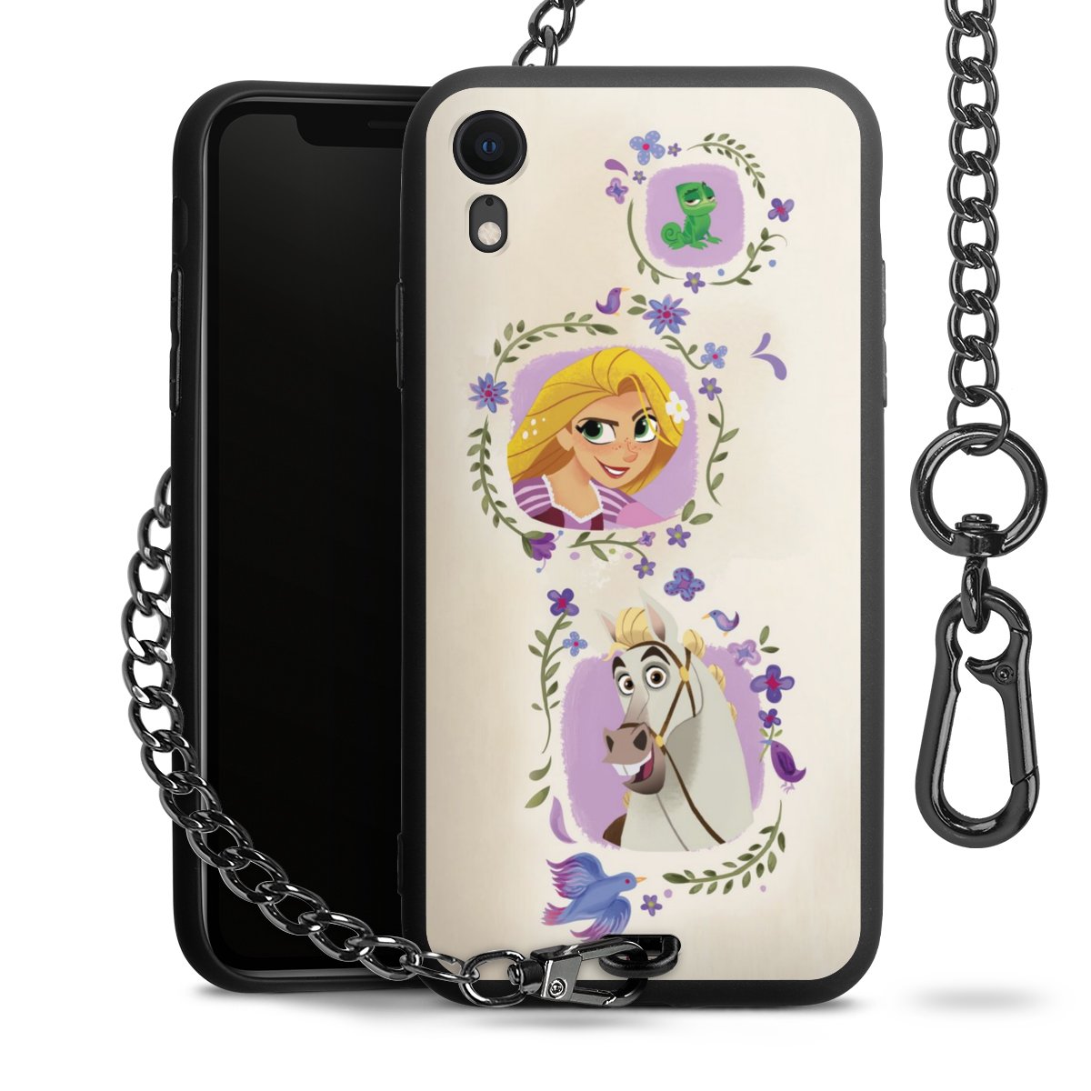 • Mattschwarze Handyhülle mit Metallkette