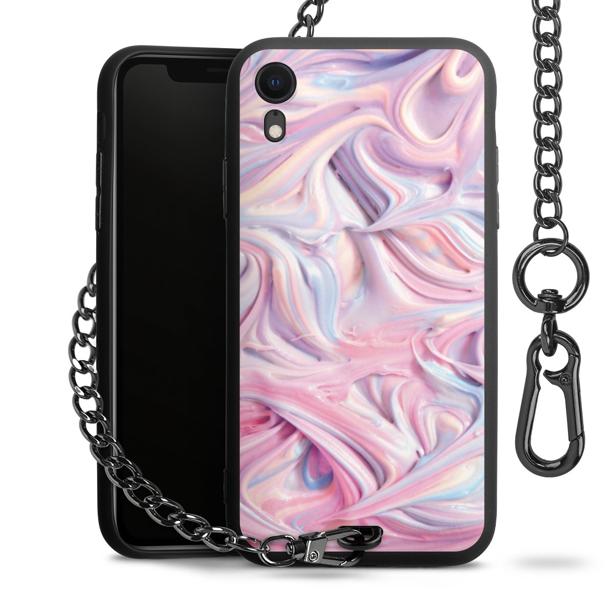 • Mattschwarze Handyhülle mit Metallkette