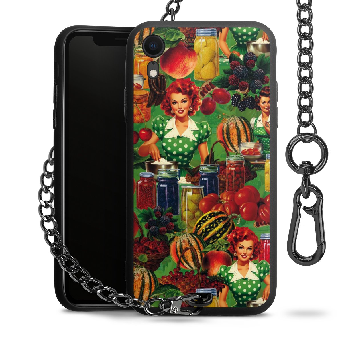 • Mattschwarze Handyhülle mit Metallkette