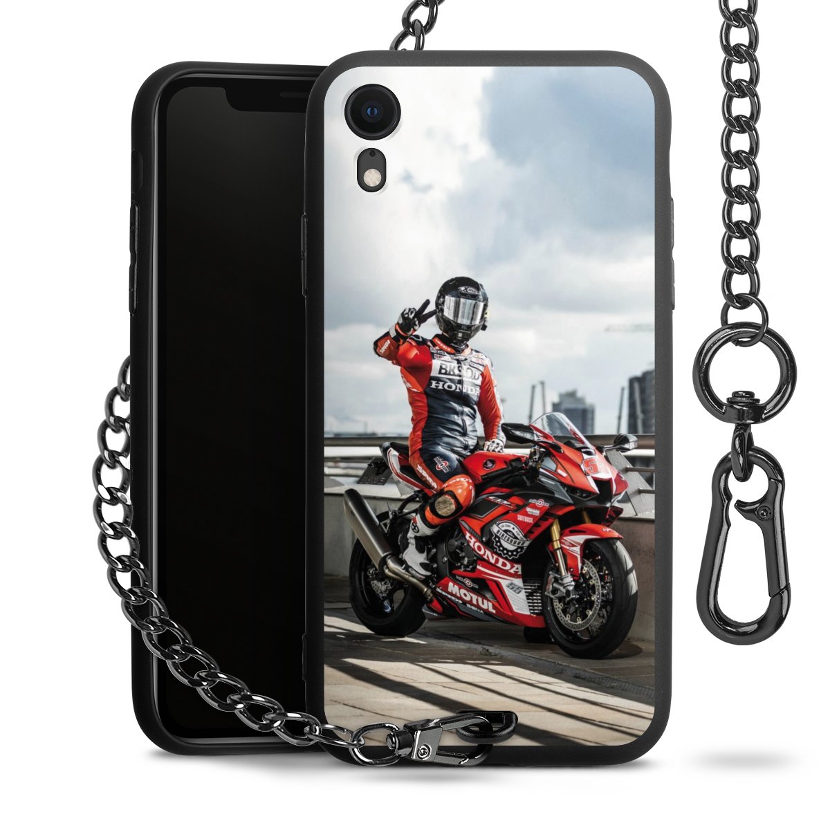 • Mattschwarze Handyhülle mit Metallkette