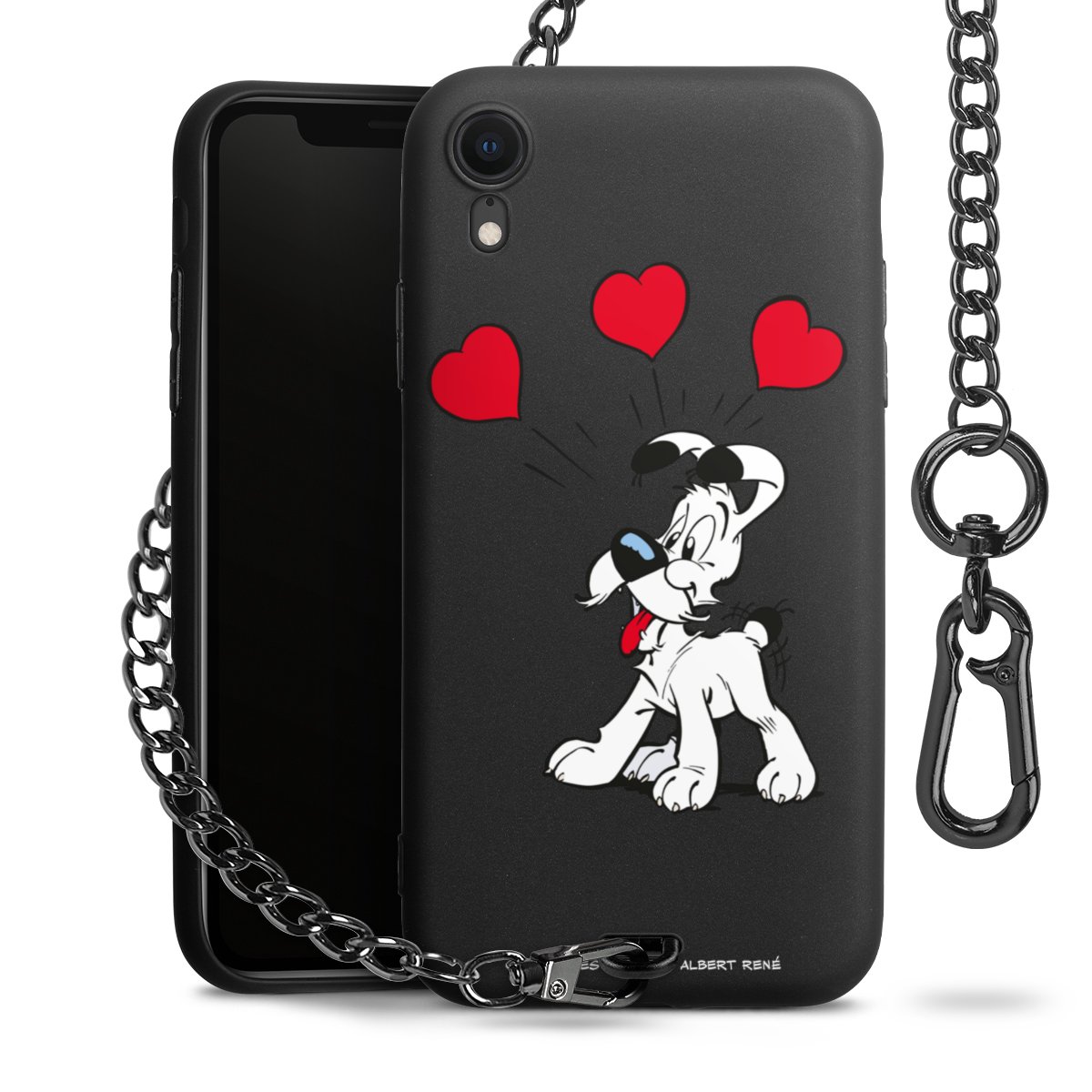 • Mattschwarze Handyhülle mit Metallkette