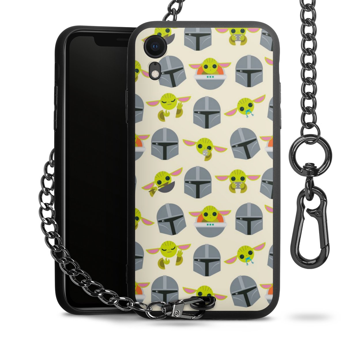 Die mattschwarze Silikon-Handyhülle besteht aus robustem TPU (thermoplastisches Polyurethan). Sie ist flexibel und schützt Dein Smartphone vor Stößen und Kratzern. Die Kette sowie der Karabinerhaken sind aus Metall in Gunmetal-Optik gefertigt. Für dieses Produkt kommen ausschließlich TÜV-geprüfte Materialien zum Einsatz.