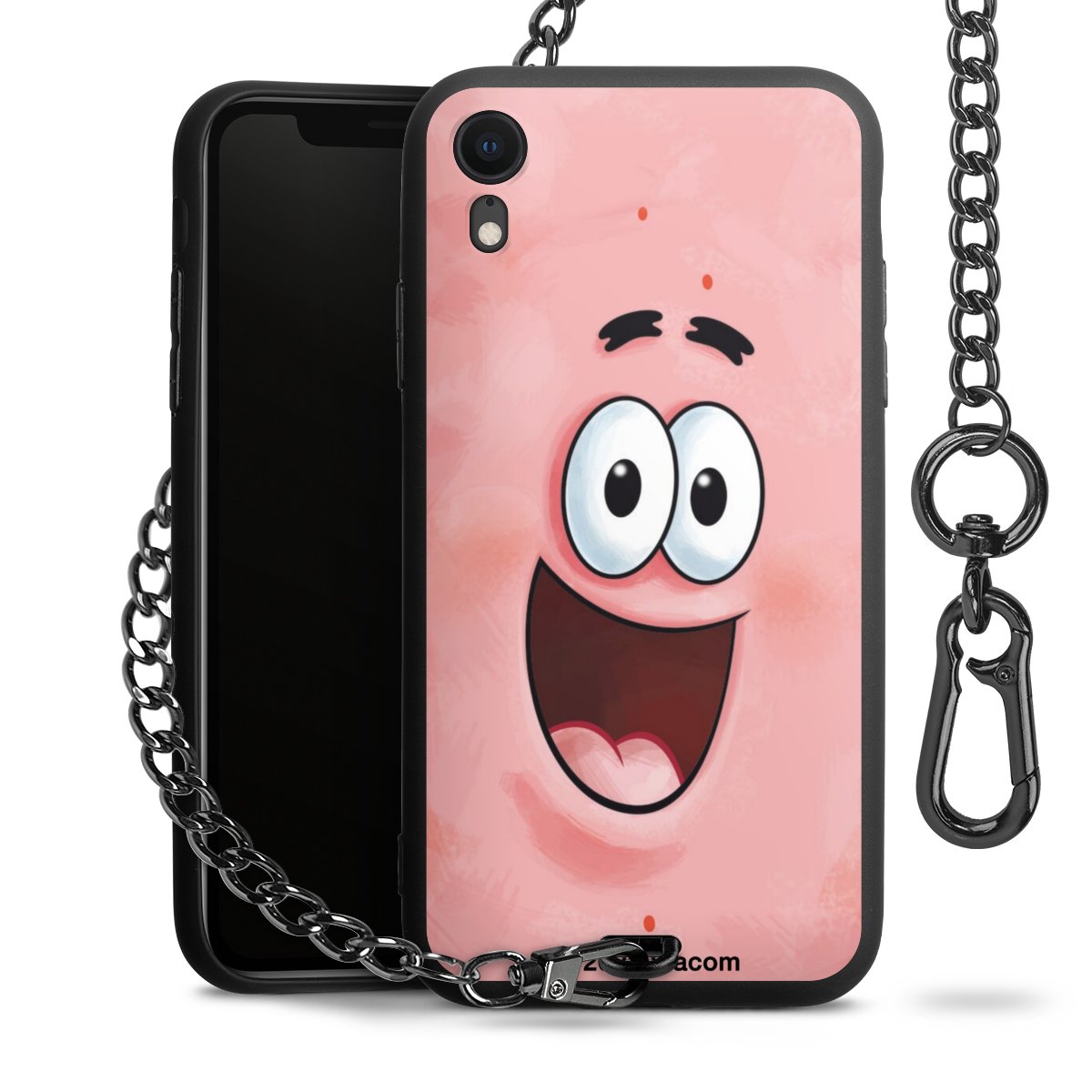 Die Handyhülle verfügt über eine mittig am unteren Rand platzierte Öse, an der die Metallkette stabil befestigt ist. Bestelle die Hülle einfach für Dein Smartphone-Modell, dann passt sie wie angegossen und Du brauchst sie bloß einmal anzudrücken. Handy in die Tasche, Karabiner an den Hosenbund – schon kann die Party starten.