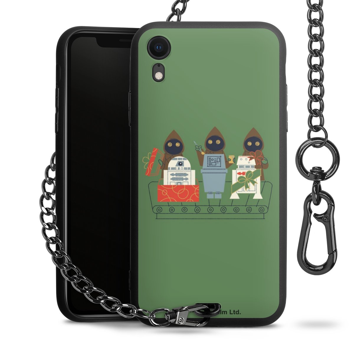 Die mattschwarze Silikon-Handyhülle besteht aus robustem TPU (thermoplastisches Polyurethan). Sie ist flexibel und schützt Dein Smartphone vor Stößen und Kratzern. Die Kette sowie der Karabinerhaken sind aus Metall in Gunmetal-Optik gefertigt. Für dieses Produkt kommen ausschließlich TÜV-geprüfte Materialien zum Einsatz.