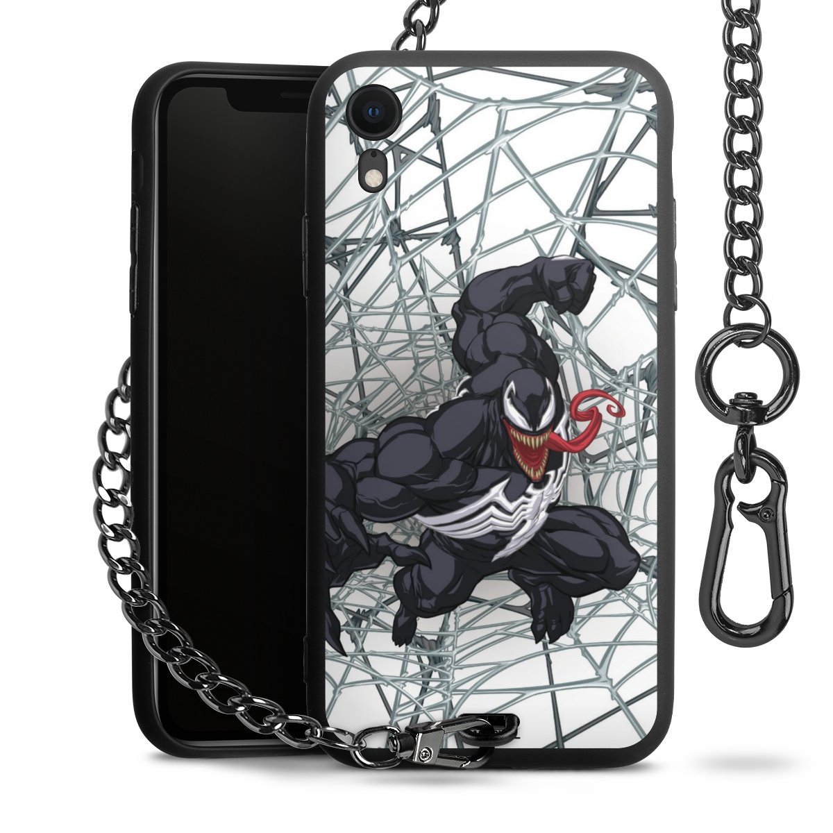 Die mattschwarze Silikon-Handyhülle besteht aus robustem TPU (thermoplastisches Polyurethan). Sie ist flexibel und schützt Dein Smartphone vor Stößen und Kratzern. Die Kette sowie der Karabinerhaken sind aus Metall in Gunmetal-Optik gefertigt. Für dieses Produkt kommen ausschließlich TÜV-geprüfte Materialien zum Einsatz.