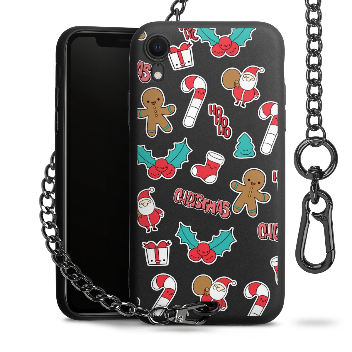 - Mattschwarze Handyhülle mit Metallkette