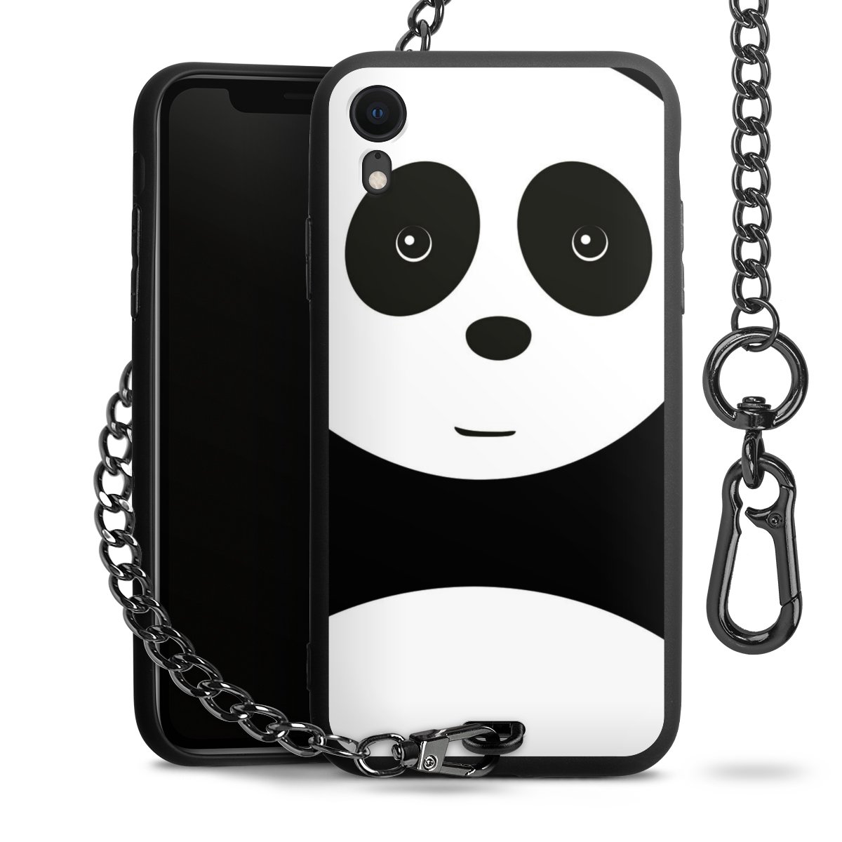 • Mattschwarze Handyhülle mit Metallkette