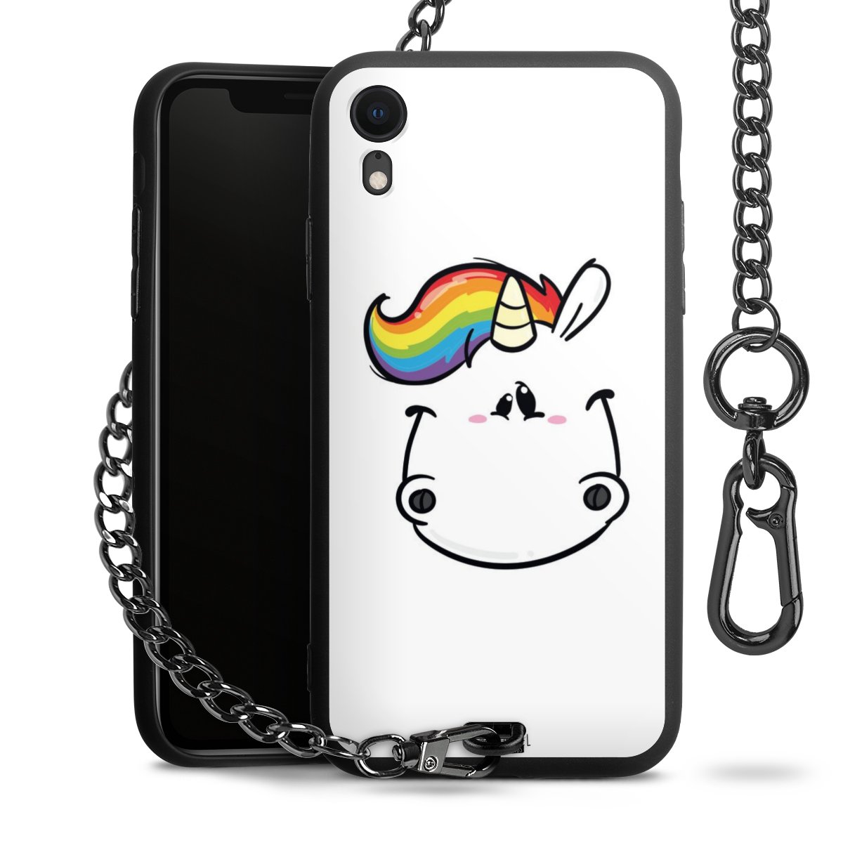 Die mattschwarze Silikon-Handyhülle besteht aus robustem TPU (thermoplastisches Polyurethan). Sie ist flexibel und schützt Dein Smartphone vor Stößen und Kratzern. Die Kette sowie der Karabinerhaken sind aus Metall in Gunmetal-Optik gefertigt. Für dieses Produkt kommen ausschließlich TÜV-geprüfte Materialien zum Einsatz.