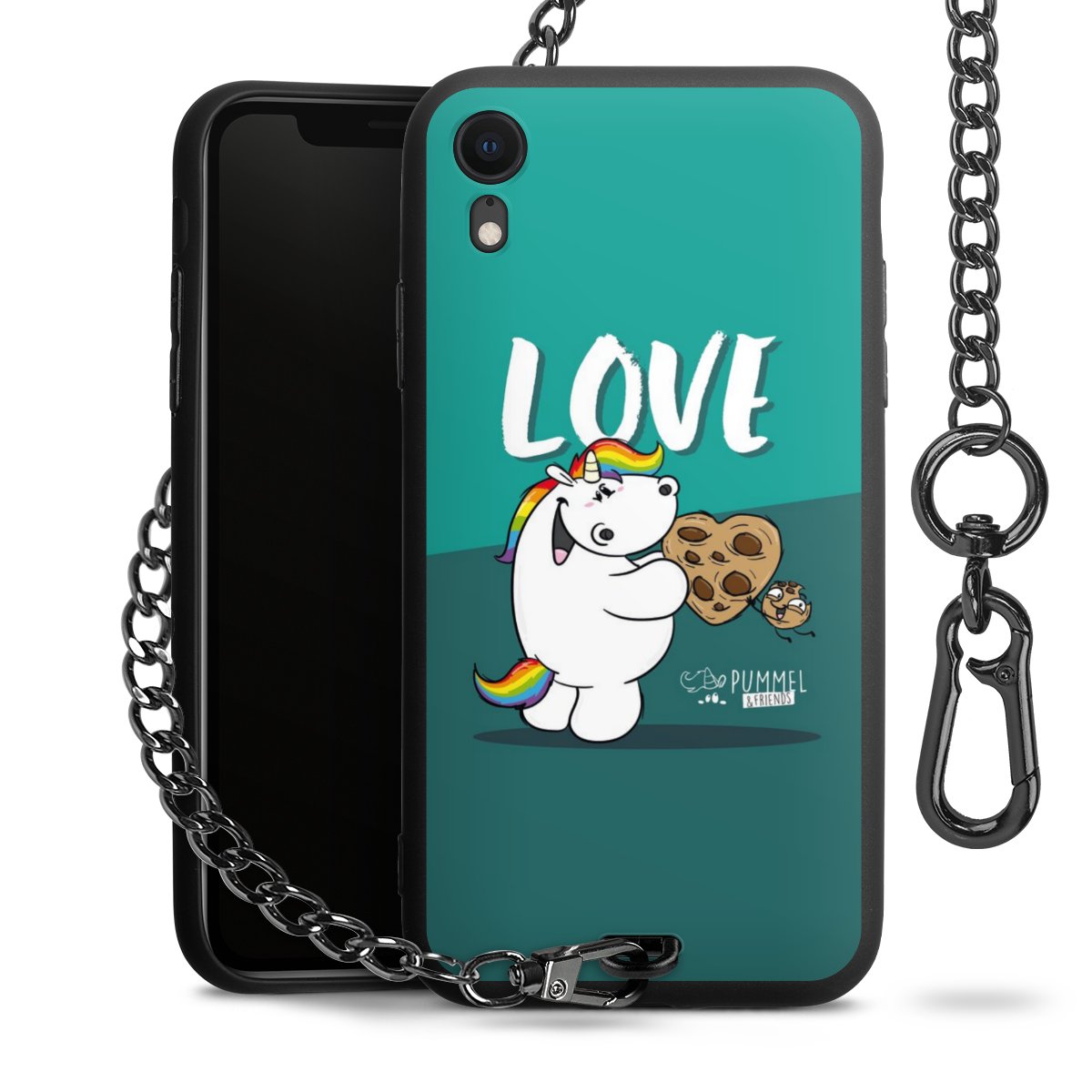 Die mattschwarze Silikon-Handyhülle besteht aus robustem TPU (thermoplastisches Polyurethan). Sie ist flexibel und schützt Dein Smartphone vor Stößen und Kratzern. Die Kette sowie der Karabinerhaken sind aus Metall in Gunmetal-Optik gefertigt. Für dieses Produkt kommen ausschließlich TÜV-geprüfte Materialien zum Einsatz.