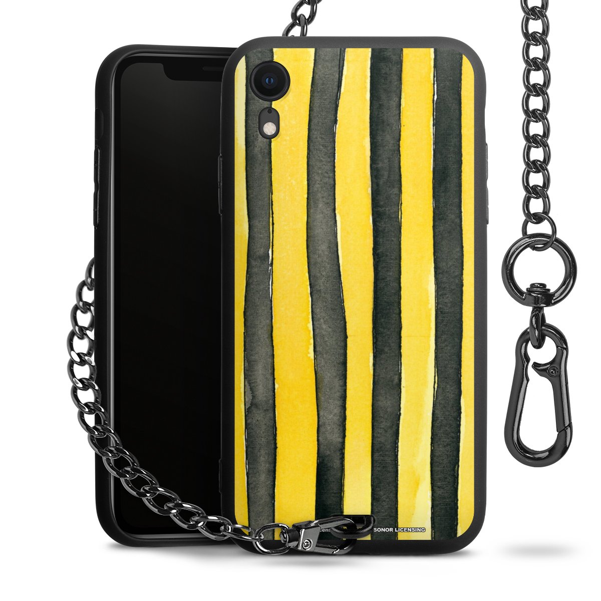 Die mattschwarze Silikon-Handyhülle besteht aus robustem TPU (thermoplastisches Polyurethan). Sie ist flexibel und schützt Dein Smartphone vor Stößen und Kratzern. Die Kette sowie der Karabinerhaken sind aus Metall in Gunmetal-Optik gefertigt. Für dieses Produkt kommen ausschließlich TÜV-geprüfte Materialien zum Einsatz.