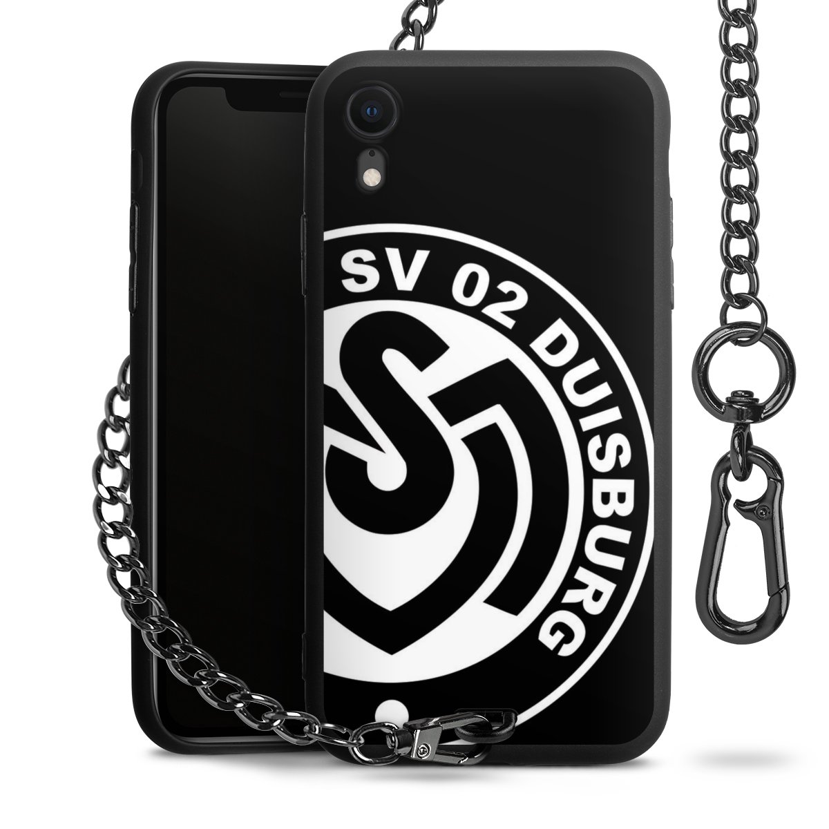 Die mattschwarze Silikon-Handyhülle besteht aus robustem TPU (thermoplastisches Polyurethan). Sie ist flexibel und schützt Dein Smartphone vor Stößen und Kratzern. Die Kette sowie der Karabinerhaken sind aus Metall in Gunmetal-Optik gefertigt. Für dieses Produkt kommen ausschließlich TÜV-geprüfte Materialien zum Einsatz.