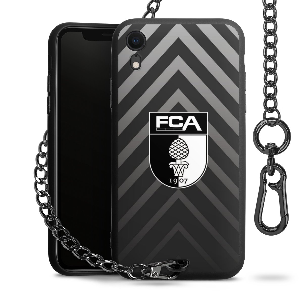 • Mattschwarze Handyhülle mit Metallkette