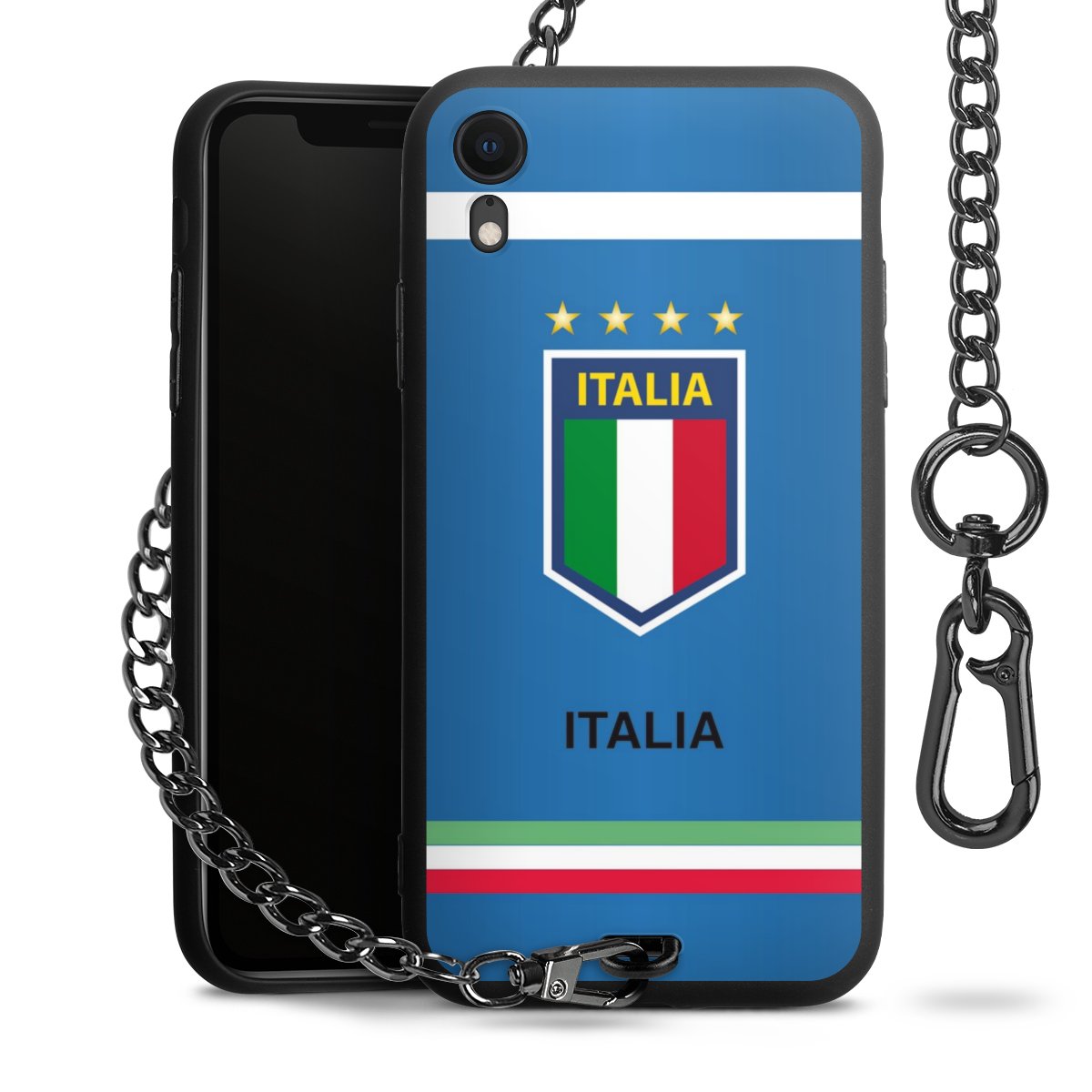 - Mattschwarze Handyhülle mit Metallkette