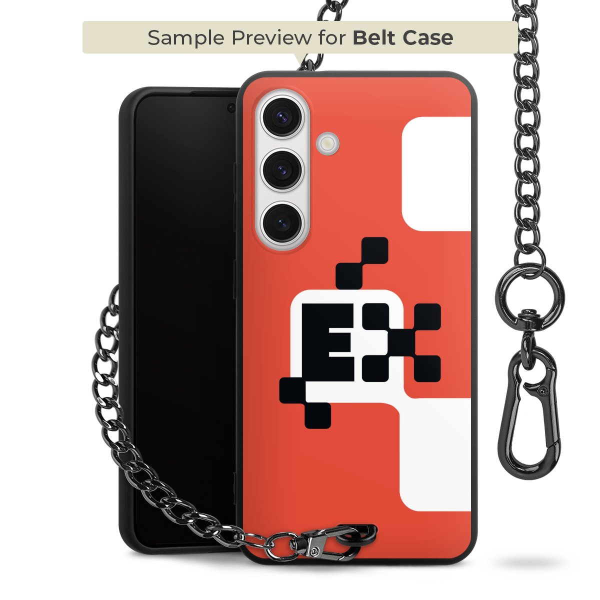 Ob im Alltag, beim Feiern mit Deinen Jungs oder auf Festivals – mit dem superpraktischen Belt Case steckst Du alle Sorgen um Diebstahl und Spider-App ganz entspannt in die Tasche. Es besteht aus einem coolen mattschwarzen Silikon Premium Case, dem Du ein individuelles Design verpassen kannst, und einer daran befestigten Kette in lässiger Gunmetal-Optik. Mit dem Karabiner auf der anderen Seite klickst Du die Kette mit einem Handgriff an Deine Gürtelschlaufe und schon ist Dein Smartphone sicher und stets griffbereit in der Hosentasche verstaut.