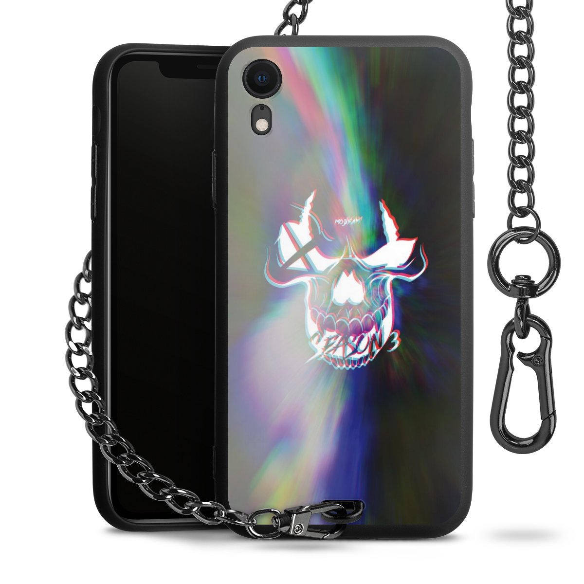 • Mattschwarze Handyhülle mit Metallkette