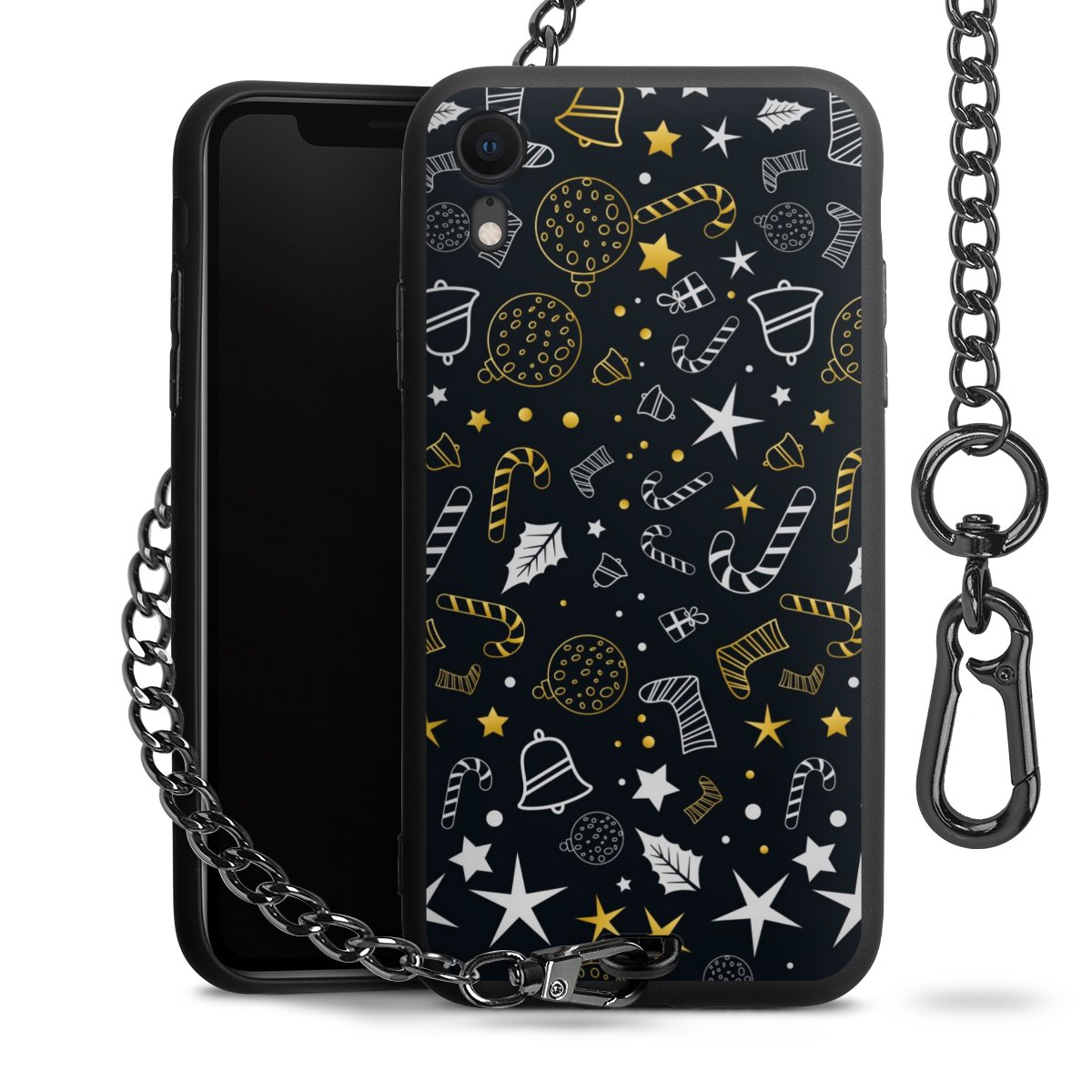 - Mattschwarze Handyhülle mit Metallkette