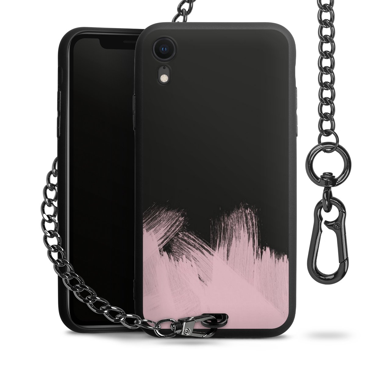 • Mattschwarze Handyhülle mit Metallkette