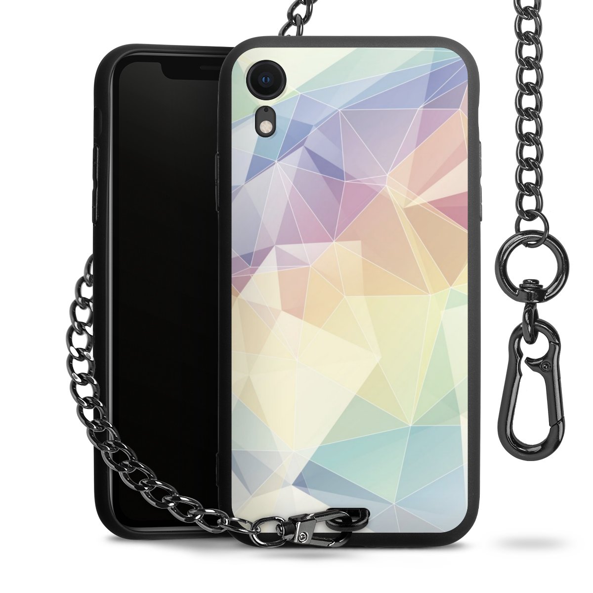- Mattschwarze Handyhülle mit Metallkette