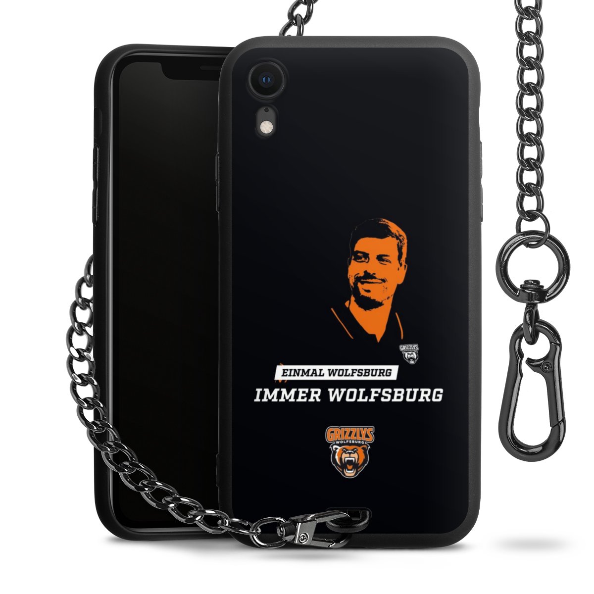 - Mattschwarze Handyhülle mit Metallkette