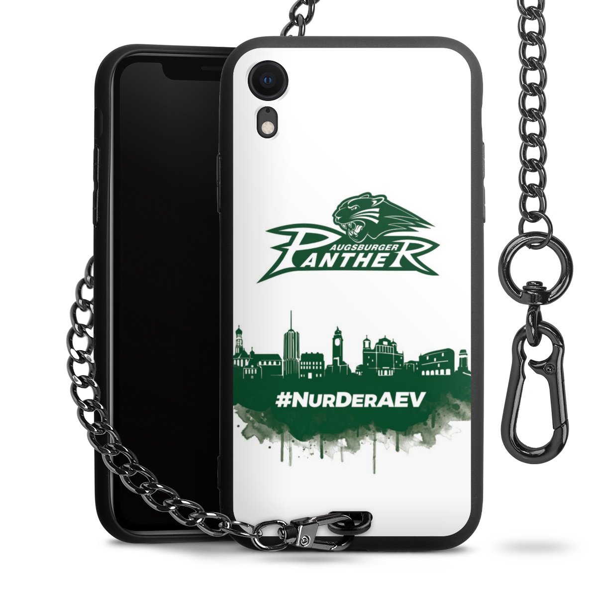 Die mattschwarze Silikon-Handyhülle besteht aus robustem TPU (thermoplastisches Polyurethan). Sie ist flexibel und schützt Dein Smartphone vor Stößen und Kratzern. Die Kette sowie der Karabinerhaken sind aus Metall in Gunmetal-Optik gefertigt. Für dieses Produkt kommen ausschließlich TÜV-geprüfte Materialien zum Einsatz.
