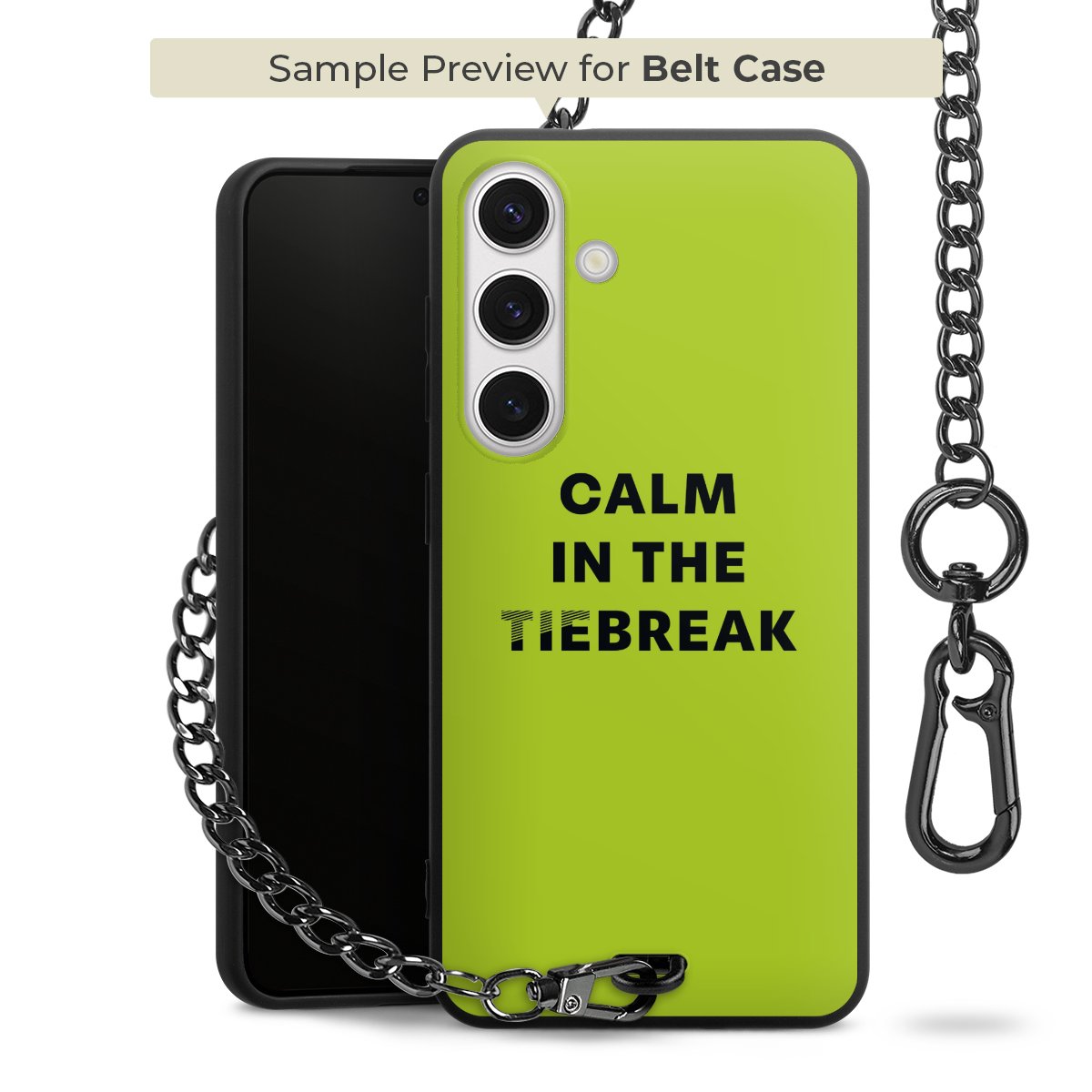 Ob im Alltag, beim Feiern mit Deinen Jungs oder auf Festivals – mit dem superpraktischen Belt Case steckst Du alle Sorgen um Diebstahl und Spider-App ganz entspannt in die Tasche. Es besteht aus einem coolen mattschwarzen Silikon Premium Case, dem Du ein individuelles Design verpassen kannst, und einer daran befestigten Kette in lässiger Gunmetal-Optik. Mit dem Karabiner auf der anderen Seite klickst Du die Kette mit einem Handgriff an Deine Gürtelschlaufe und schon ist Dein Smartphone sicher und stets griffbereit in der Hosentasche verstaut.