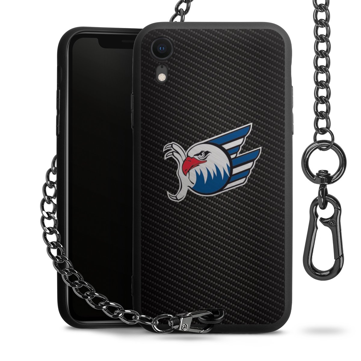 • Mattschwarze Handyhülle mit Metallkette