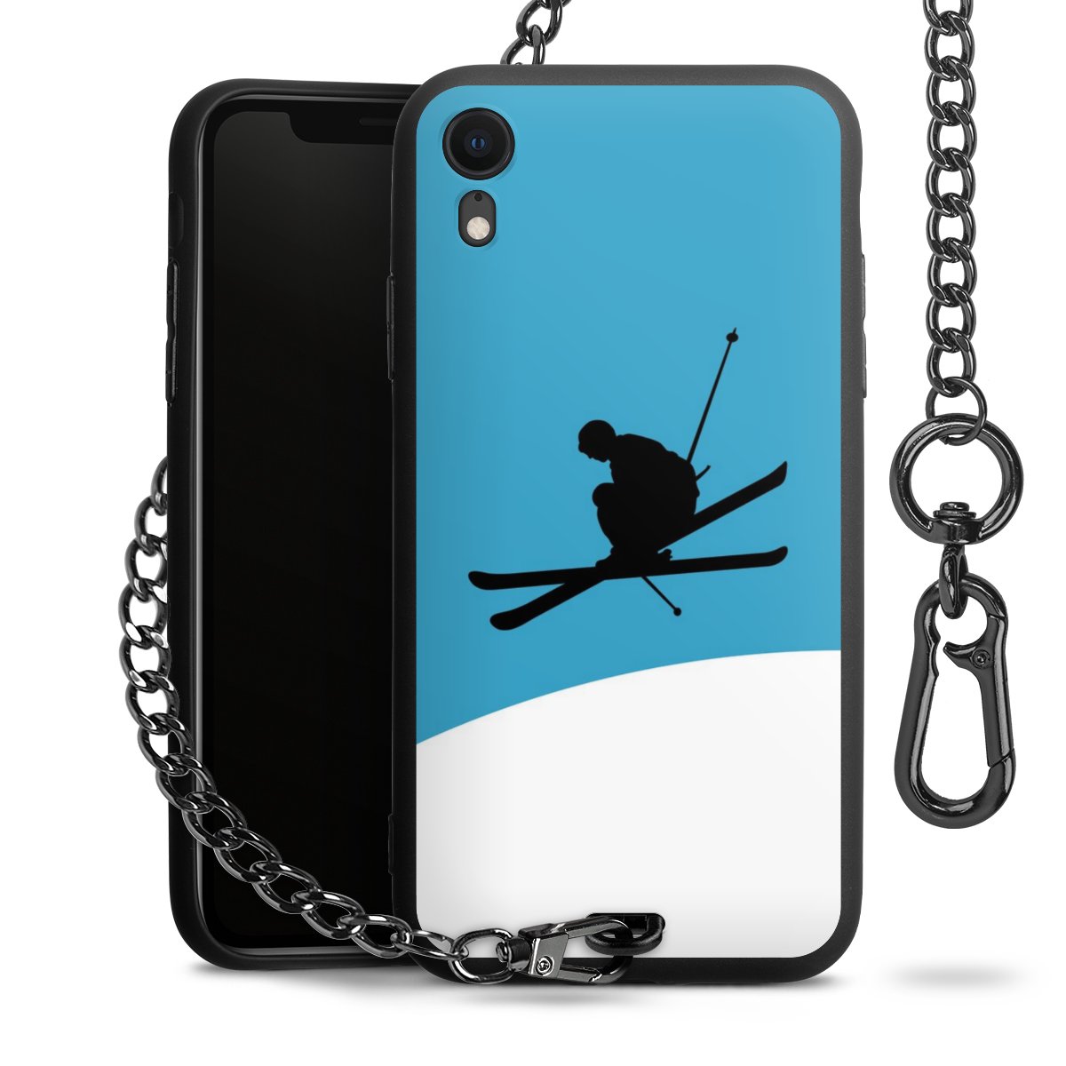 Die mattschwarze Silikon-Handyhülle besteht aus robustem TPU (thermoplastisches Polyurethan). Sie ist flexibel und schützt Dein Smartphone vor Stößen und Kratzern. Die Kette sowie der Karabinerhaken sind aus Metall in Gunmetal-Optik gefertigt. Für dieses Produkt kommen ausschließlich TÜV-geprüfte Materialien zum Einsatz.