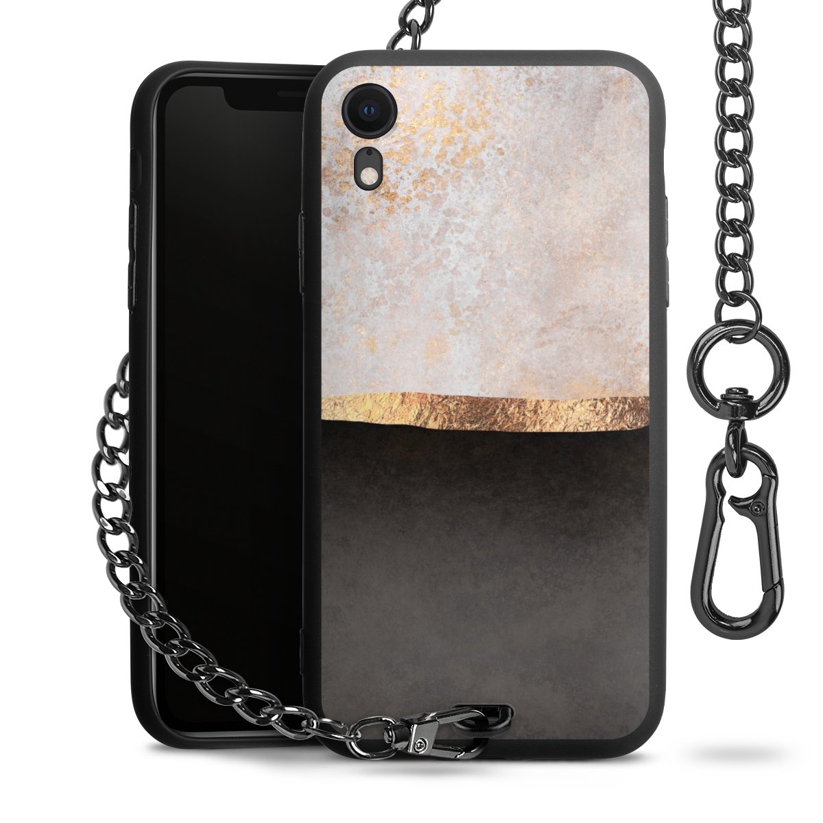 • Mattschwarze Handyhülle mit Metallkette
