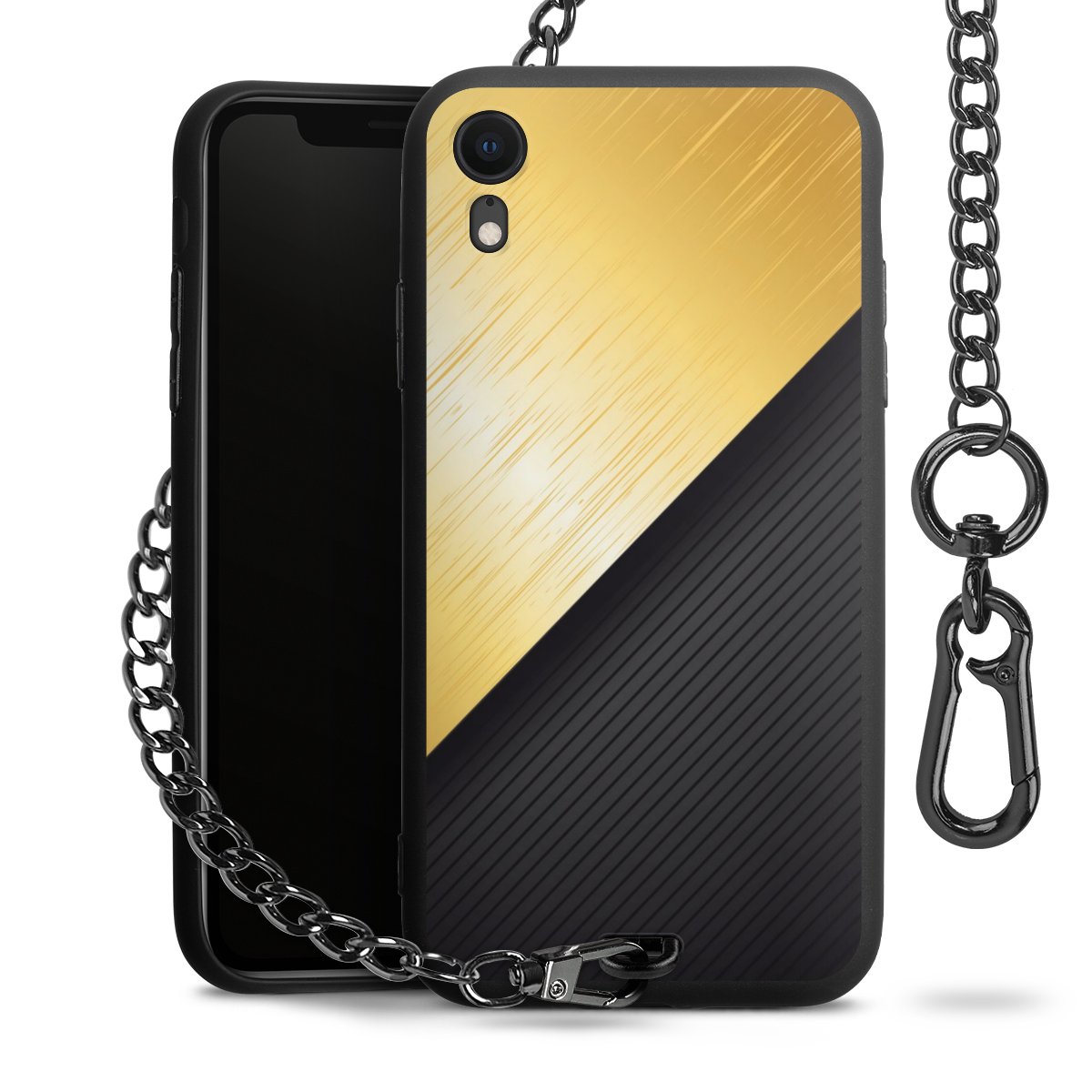 - Mattschwarze Handyhülle mit Metallkette