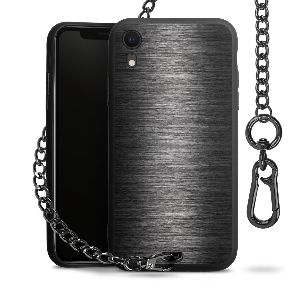 • Mattschwarze Handyhülle mit Metallkette