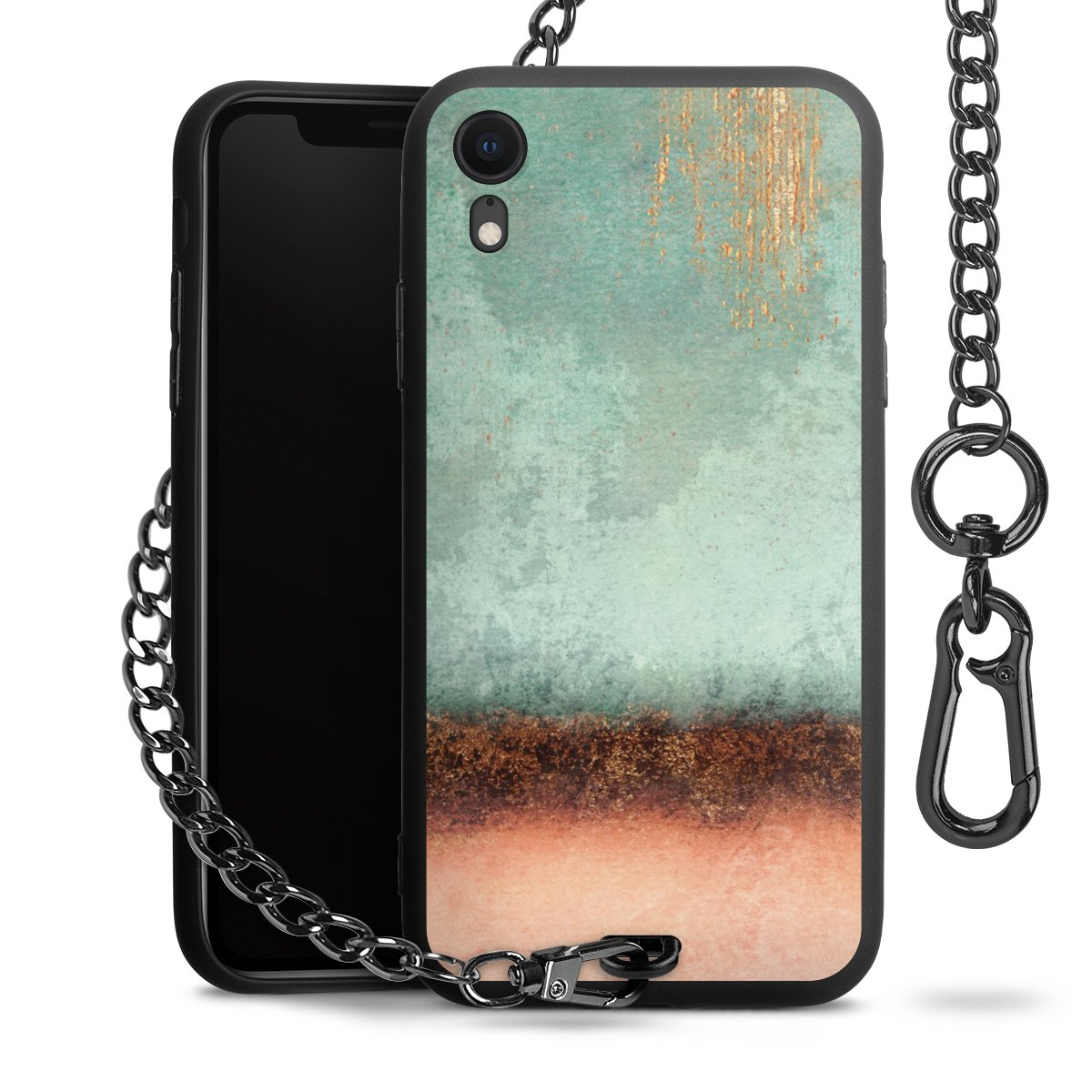 • Mattschwarze Handyhülle mit Metallkette