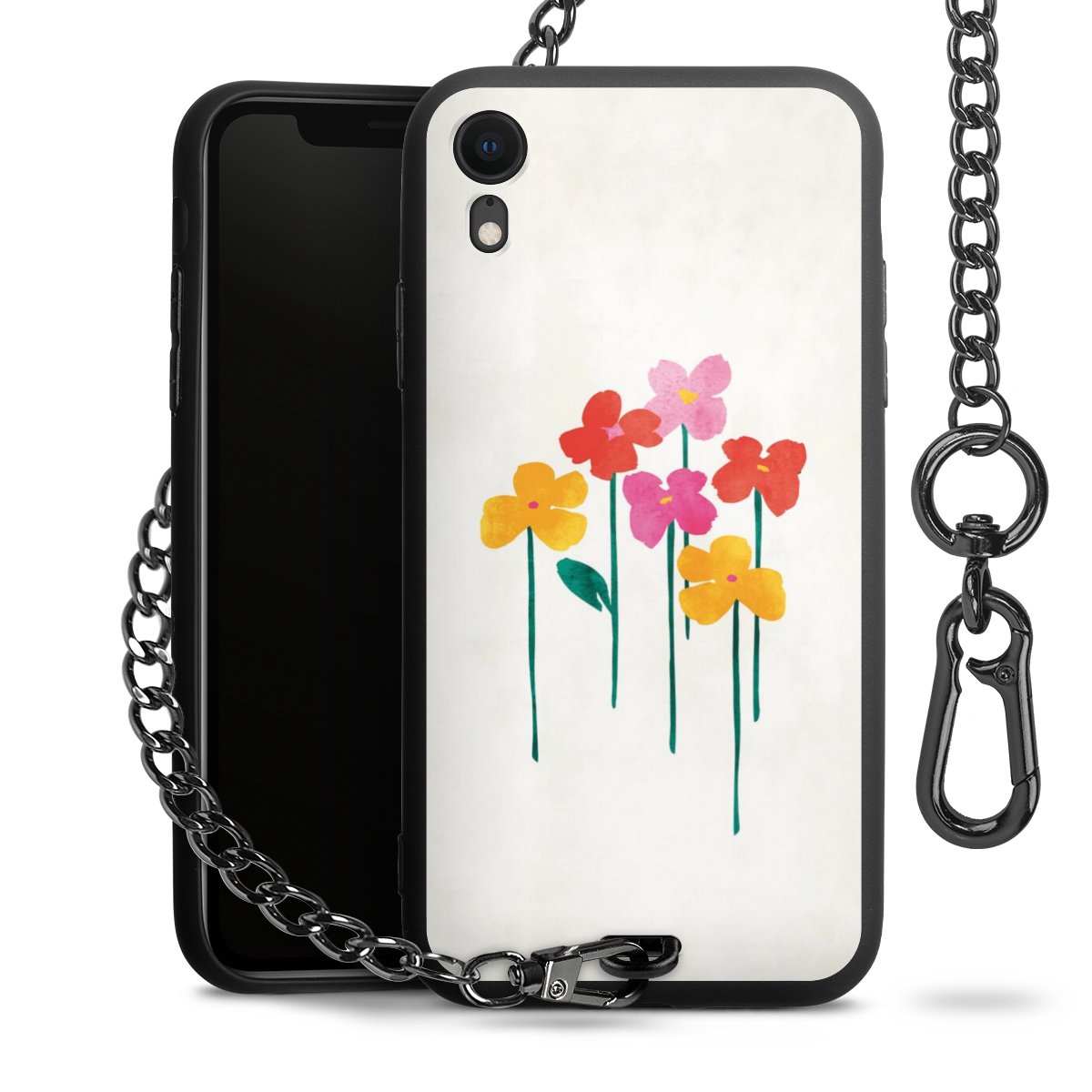 • Mattschwarze Handyhülle mit Metallkette