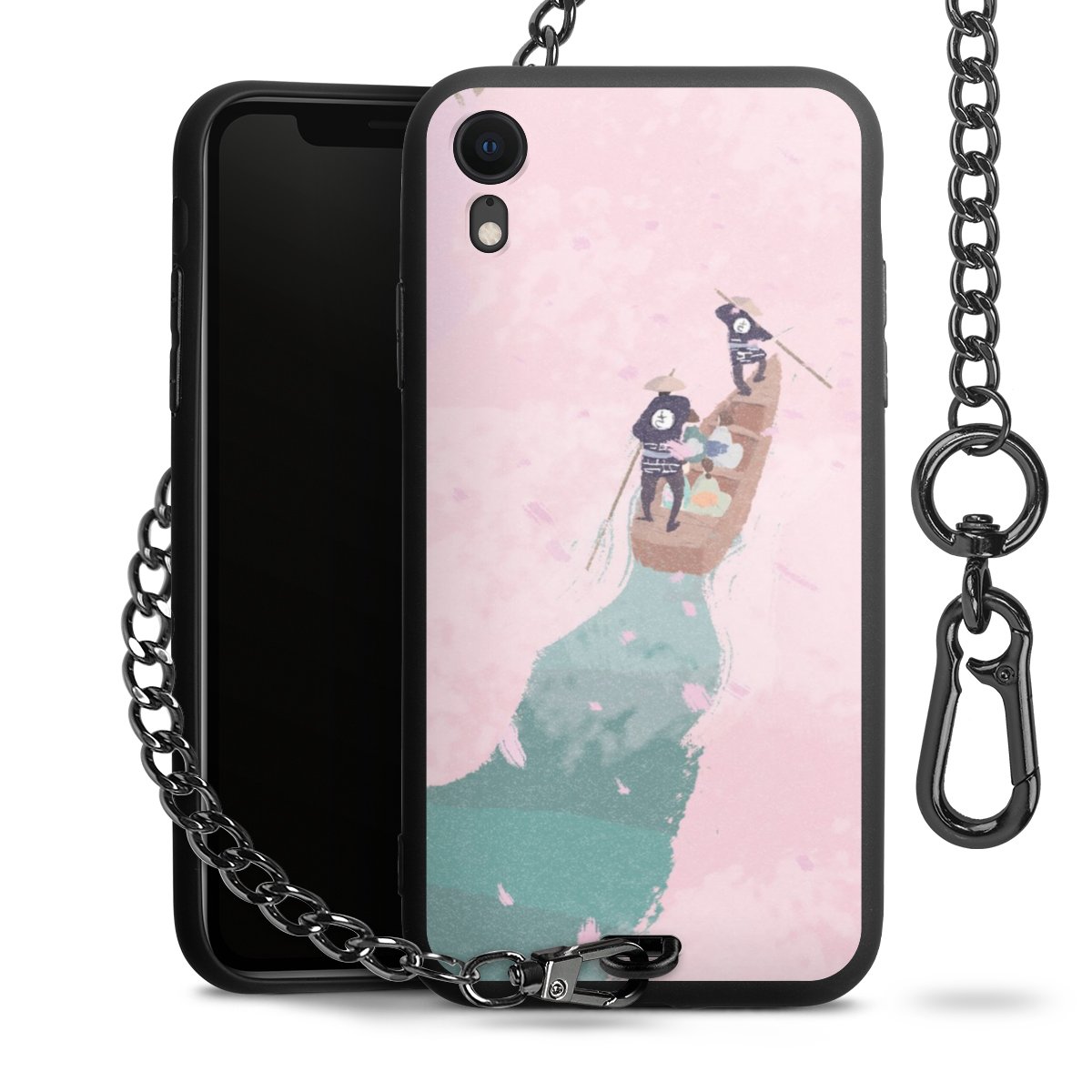 • Mattschwarze Handyhülle mit Metallkette