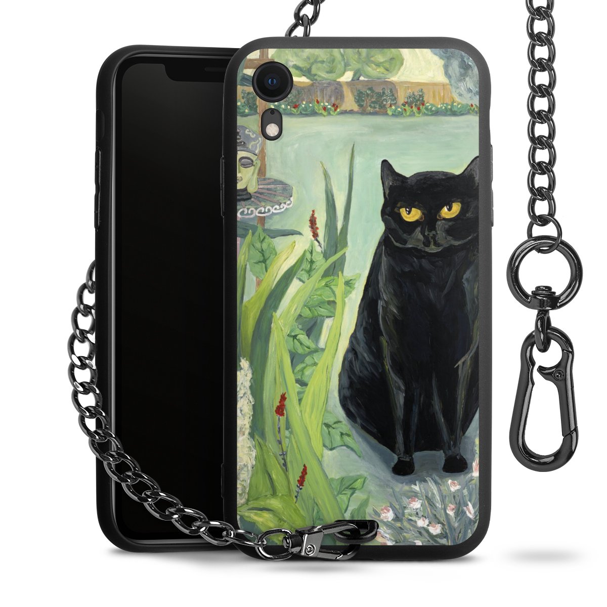 - Mattschwarze Handyhülle mit Metallkette