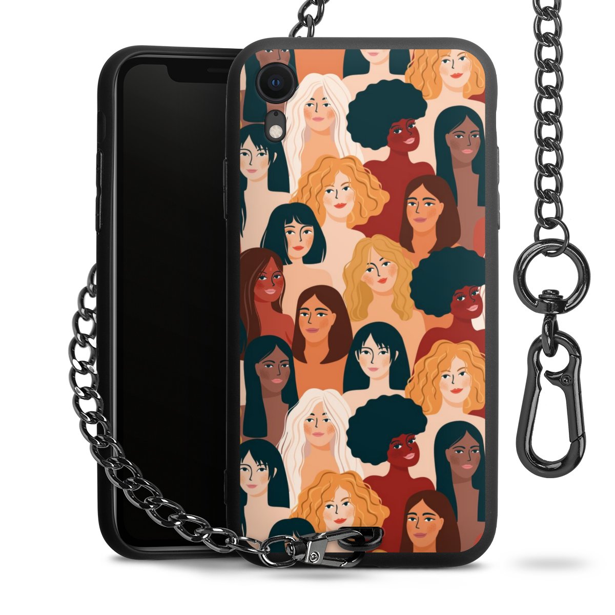 • Mattschwarze Handyhülle mit Metallkette