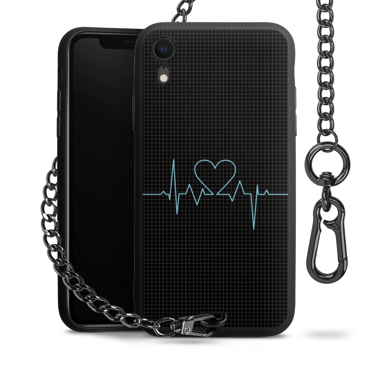 - Mattschwarze Handyhülle mit Metallkette