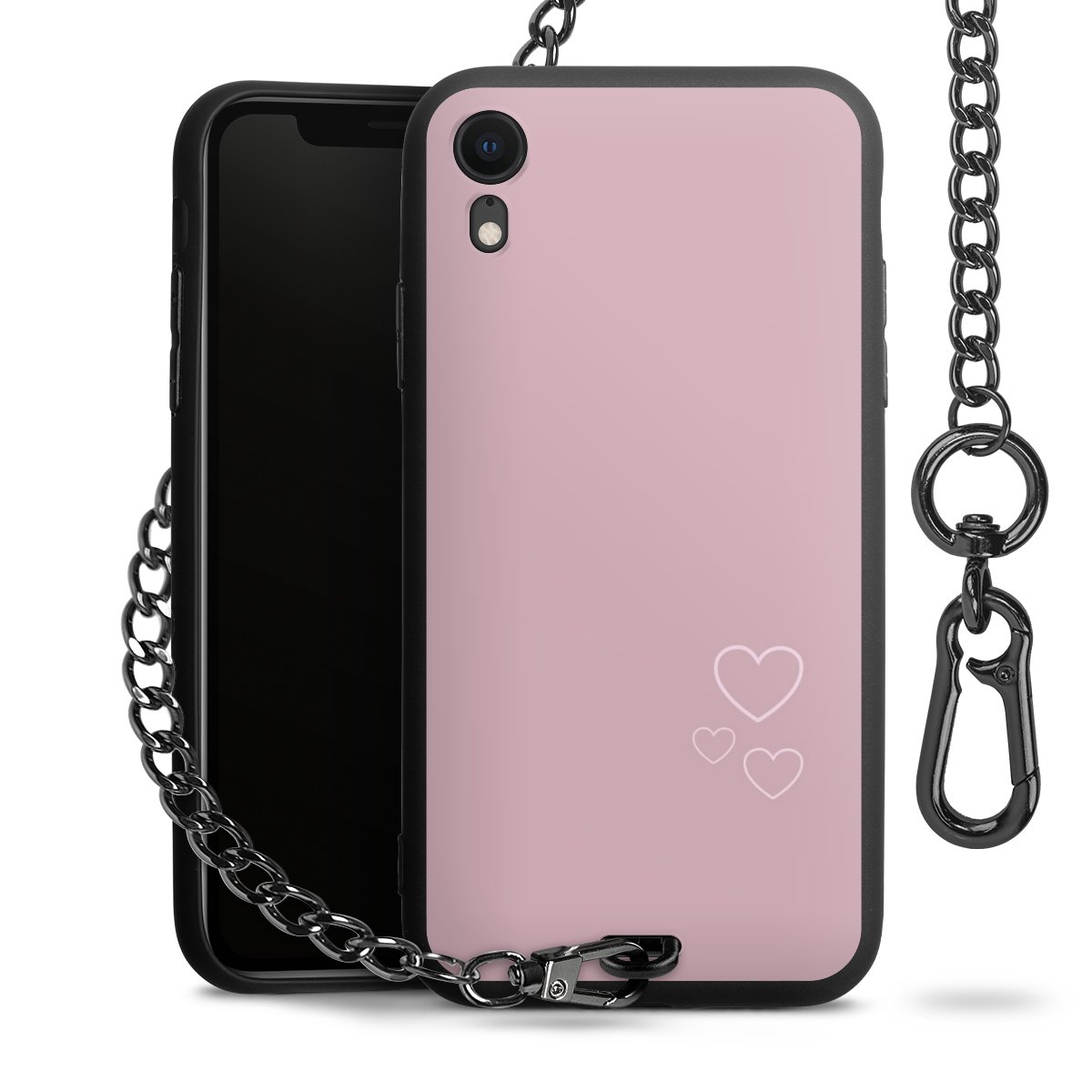 - Mattschwarze Handyhülle mit Metallkette