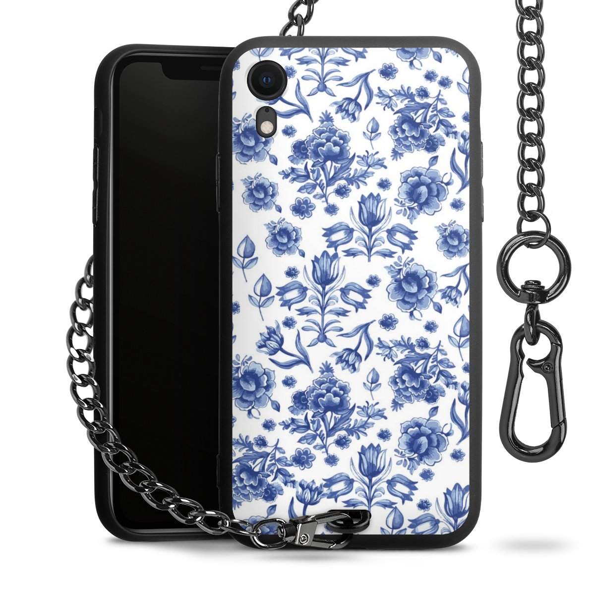 - Mattschwarze Handyhülle mit Metallkette