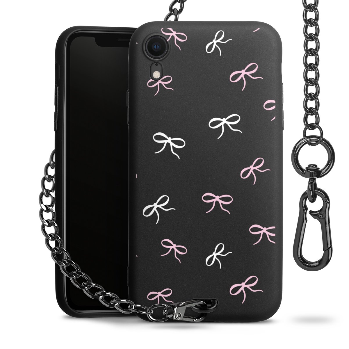 - Mattschwarze Handyhülle mit Metallkette