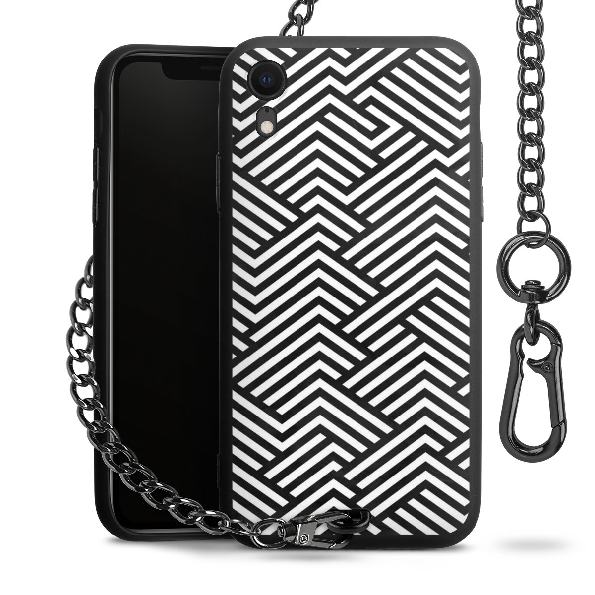 • Mattschwarze Handyhülle mit Metallkette