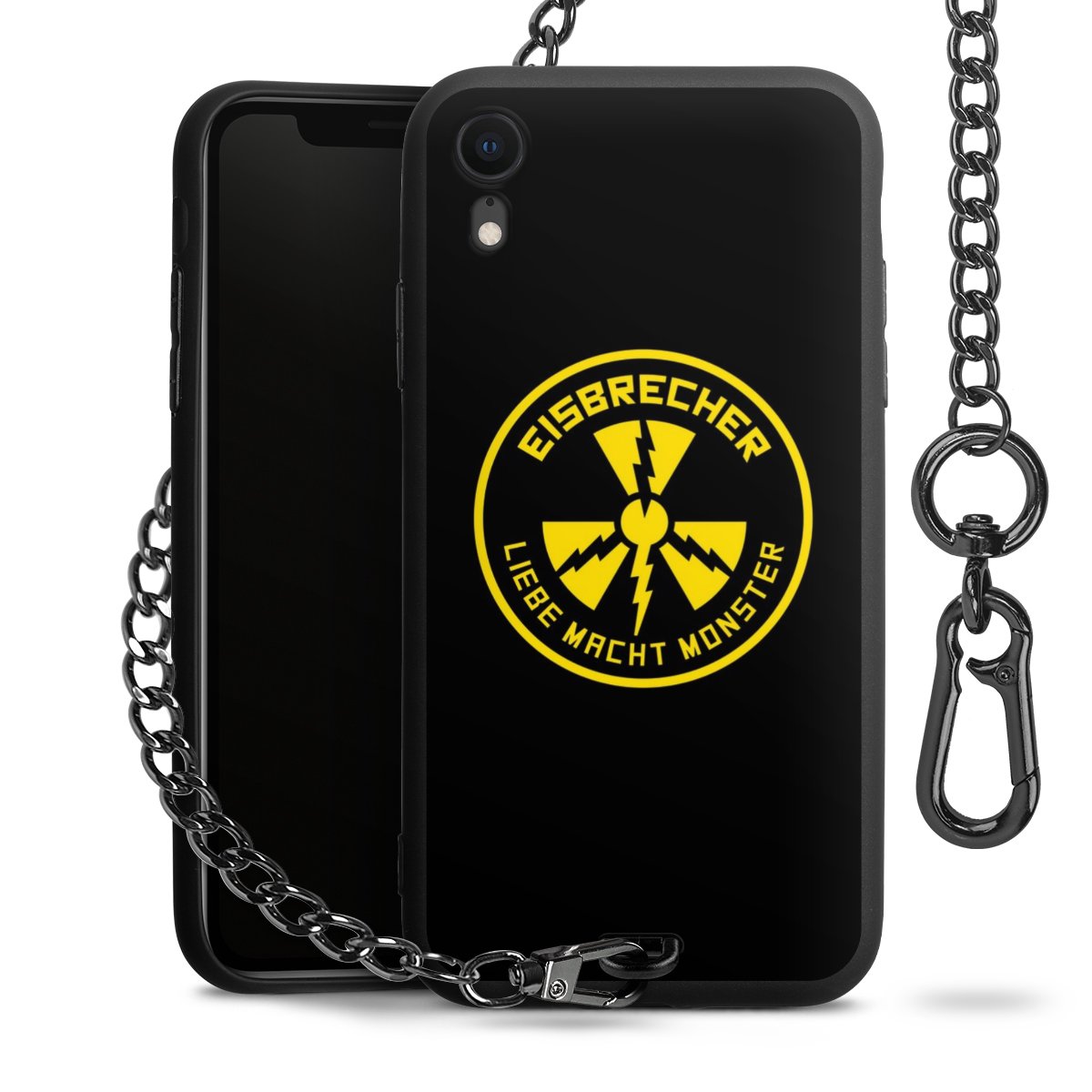Die mattschwarze Silikon-Handyhülle besteht aus robustem TPU (thermoplastisches Polyurethan). Sie ist flexibel und schützt Dein Smartphone vor Stößen und Kratzern. Die Kette sowie der Karabinerhaken sind aus Metall in Gunmetal-Optik gefertigt. Für dieses Produkt kommen ausschließlich TÜV-geprüfte Materialien zum Einsatz.