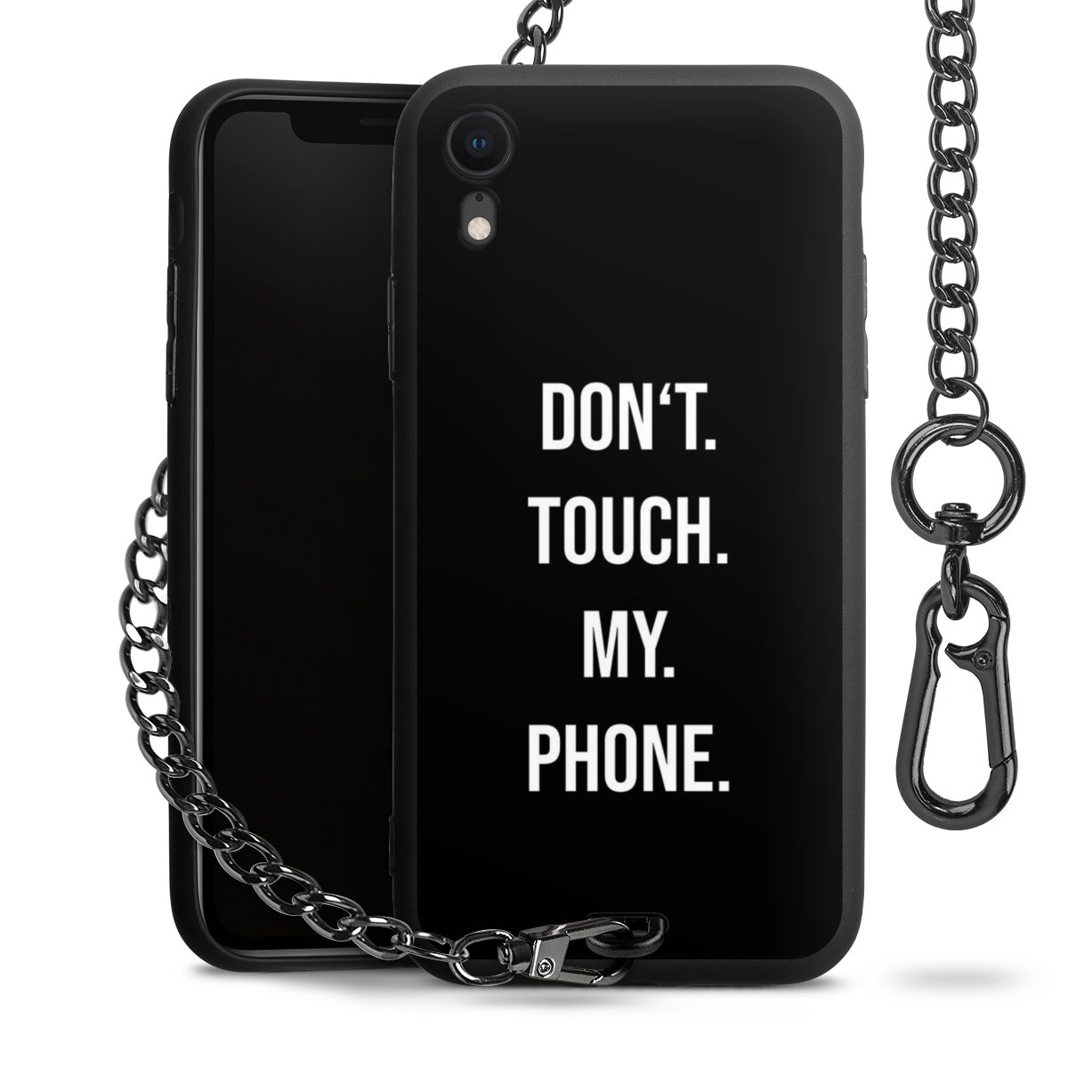 - Mattschwarze Handyhülle mit Metallkette