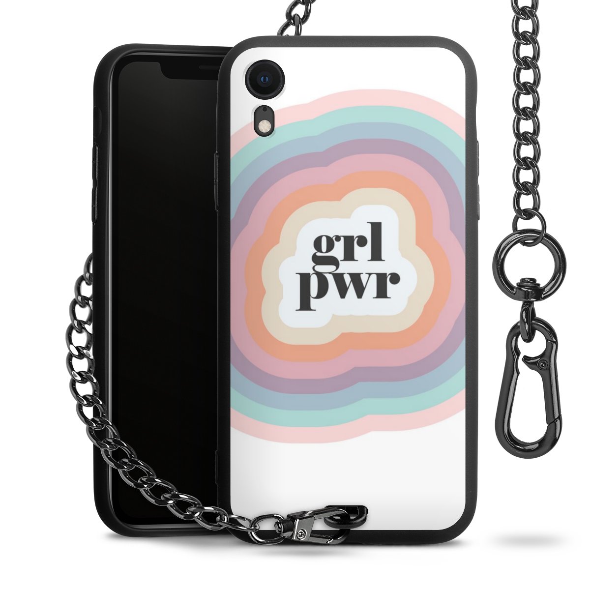 • Mattschwarze Handyhülle mit Metallkette
