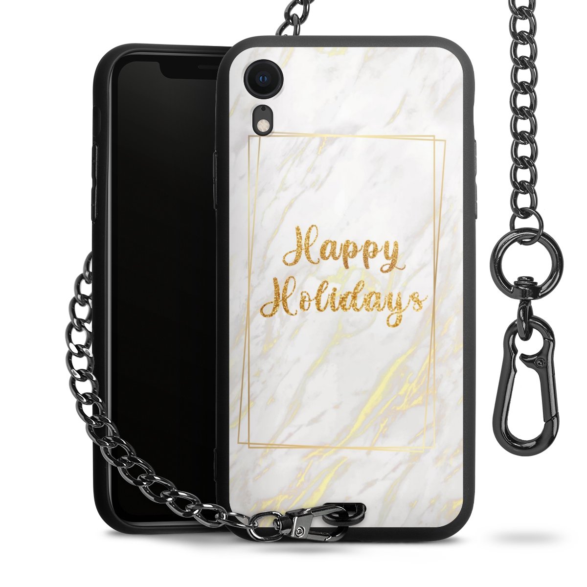 - Mattschwarze Handyhülle mit Metallkette
