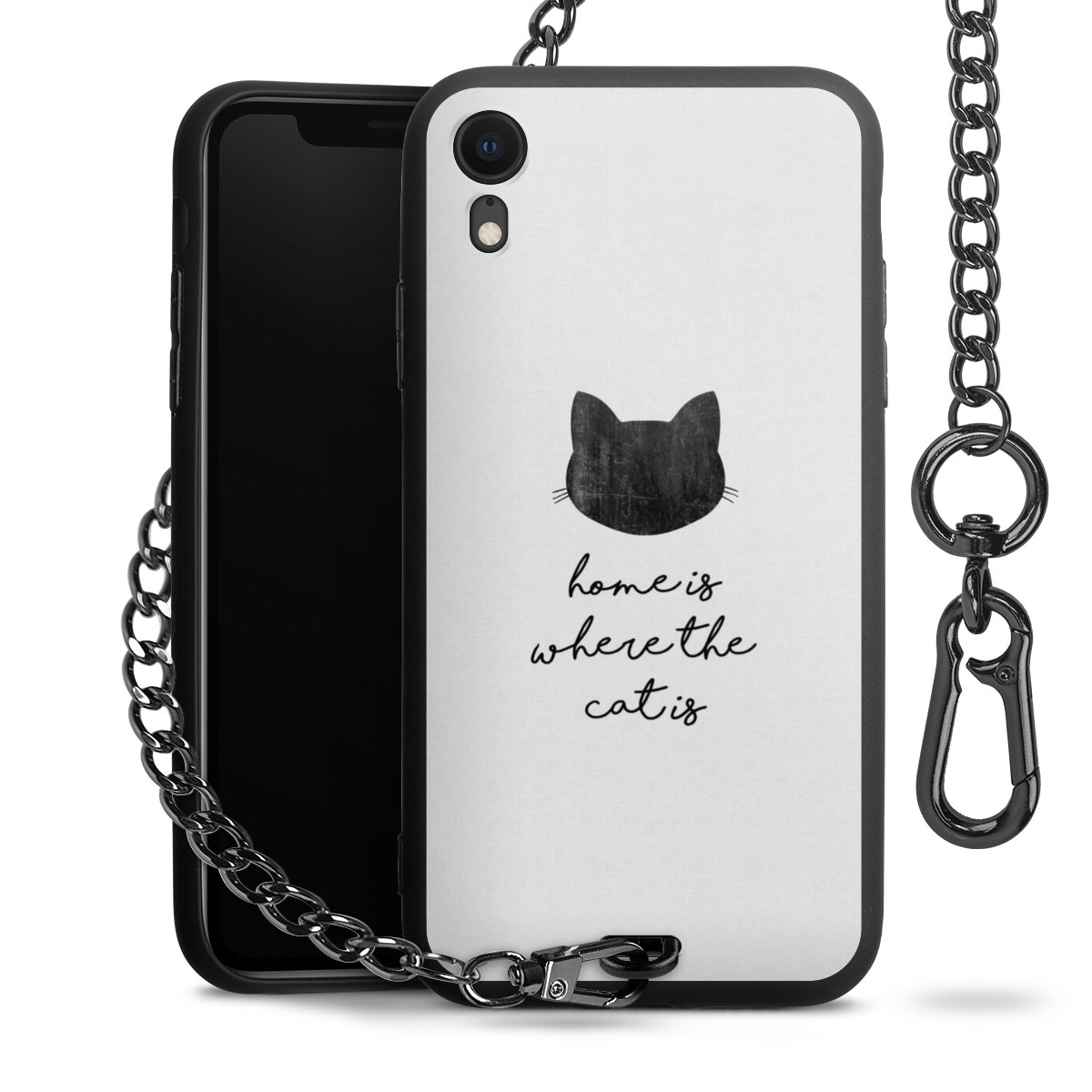 • Mattschwarze Handyhülle mit Metallkette