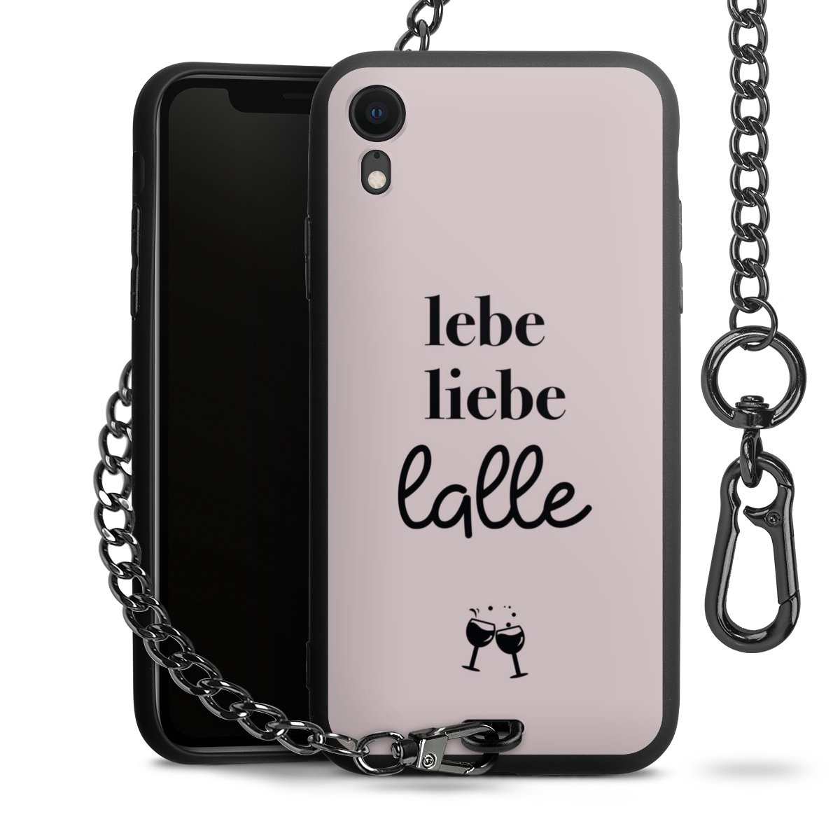 Die mattschwarze Silikon-Handyhülle besteht aus robustem TPU (thermoplastisches Polyurethan). Sie ist flexibel und schützt Dein Smartphone vor Stößen und Kratzern. Die Kette sowie der Karabinerhaken sind aus Metall in Gunmetal-Optik gefertigt. Für dieses Produkt kommen ausschließlich TÜV-geprüfte Materialien zum Einsatz.