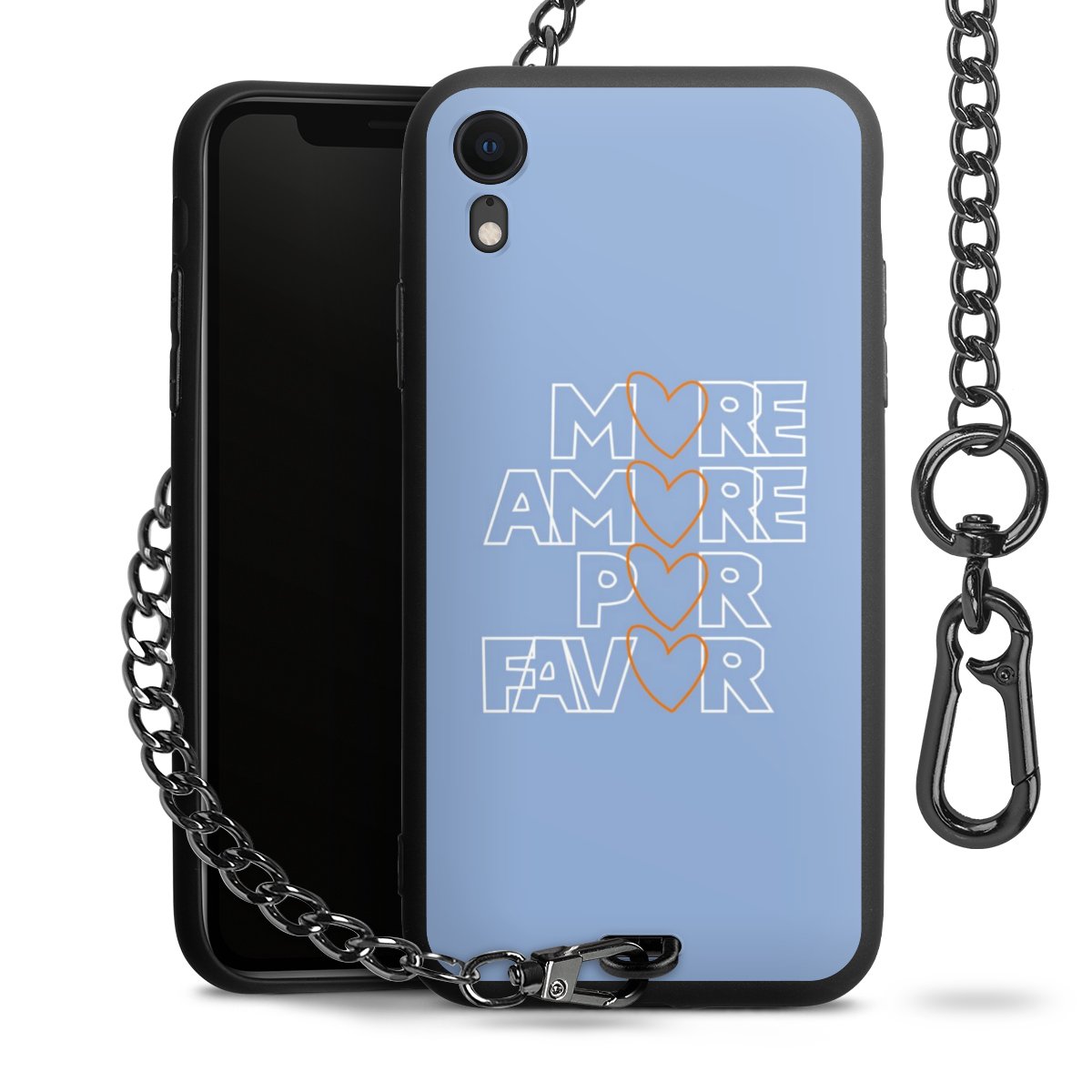 - Mattschwarze Handyhülle mit Metallkette